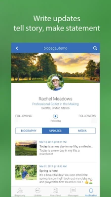 * A prominent "Biography" page with plenty of space, in clean and simple format. Be self-expressive and creative to tell who you are, whether it’s about your school, career, social life, or business.