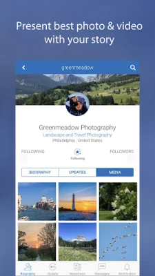 ** Post limited "Updates", stories with best photos or videos, nice and clean.