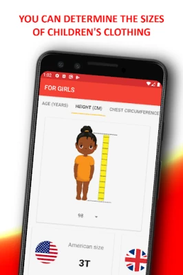 This application allows you to determine the sizes of clothes, shoes, hats and some accessories based on the values of body measurements. The application implements both an international dimensional grid and sizes according to standards in various countries. The application will help you choose the right size for men, women and children’s clothing, for example, when buying in online stores.
